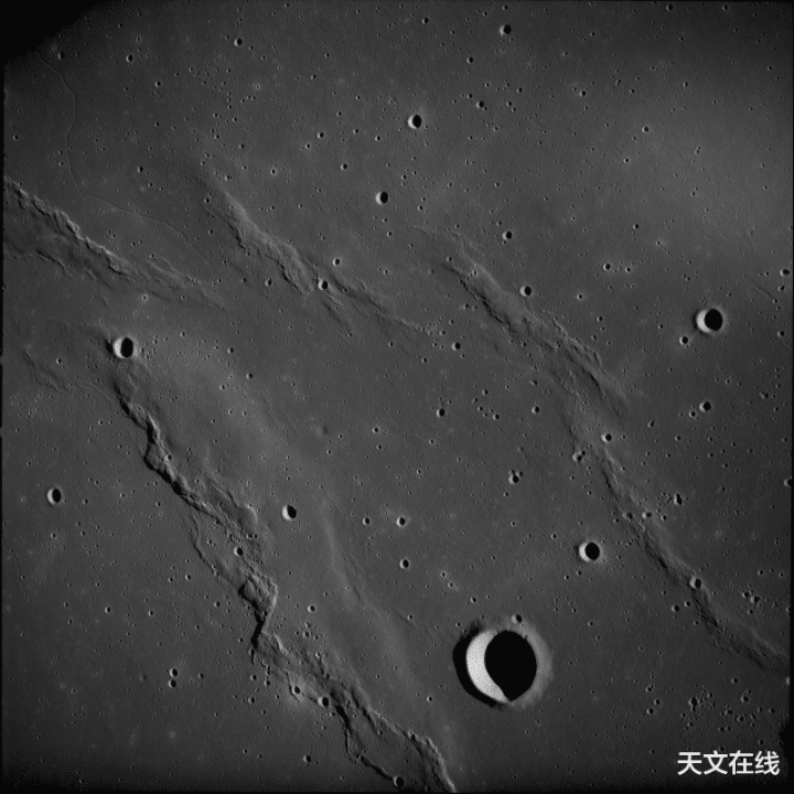 阿波罗12号拍摄了月球最大月海——风暴洋中的皱脊地貌。图像着手:好意思国国度航空航天局维基百科各人限制。