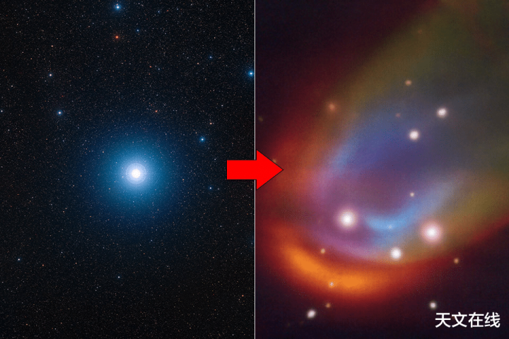 中央方形图像由欧洲南边天文台甚大千里镜上的MUSE仪器拍摄,展示了围绕示寂恒星RXJ05282838的激波结构。 图片开头:PanSTARRS